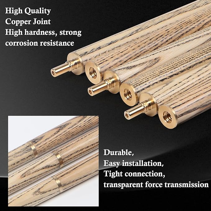 - Exquisite Shaft Craftsmanship: The three pool sticks are made of Maras wood, black walnut, and chacate preto wood, all of which are hard woods, wear-resistant and durable. Splicing craftsmanship makes the cue structure stable and not easy to crack and deform