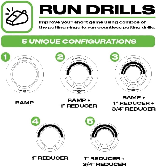 - INCLUDES RAMP & HOLE REDUCERS FOR PRECISION TRAINING: Our ring putting set is more than just a putting green outdoor ring; it complements the golf training mat for putting. With a ramp ring to control pace and two-hole reducers, it helps improve your accuracy and offers real course-like conditions. It's an essential putting practice tool for sharpening your short game skills, ideal golf stuff for men and women who want a challenging practice experience.