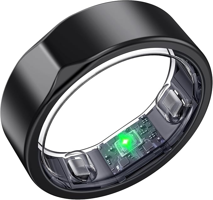 Smart Ring for Women Men - Titanium Health Fitness Tracker Ring with Heart Rate, Step Counting, Calories, Sleep & Stress Monitor for iPhone and Android, No Subscription Fee (Black, 8)
