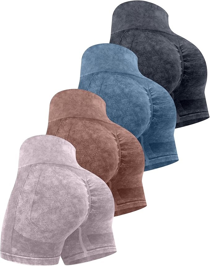 CHRLEISURE Women's 4 Packs Workout Gym Shorts, High Waisted Butt Lifting Scrunch Butt Seamless Booty Shorts