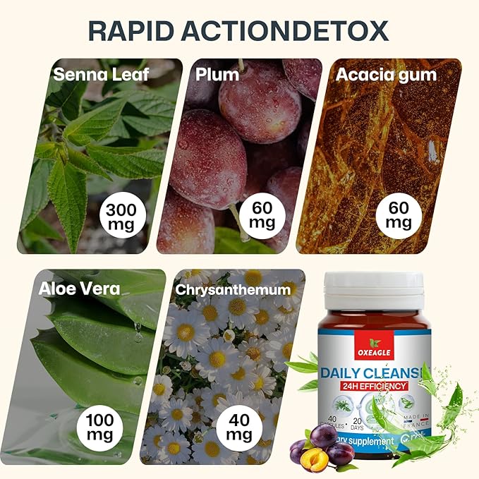 Gut Cleanse Detox for Women, Colon Cleanse & Gentle Herbal Supplements for Men, Powered with Senna Leaves, Plum, Chrysanthemum, Acacia Gum & Aloe Vera–40 Capsules (A01)