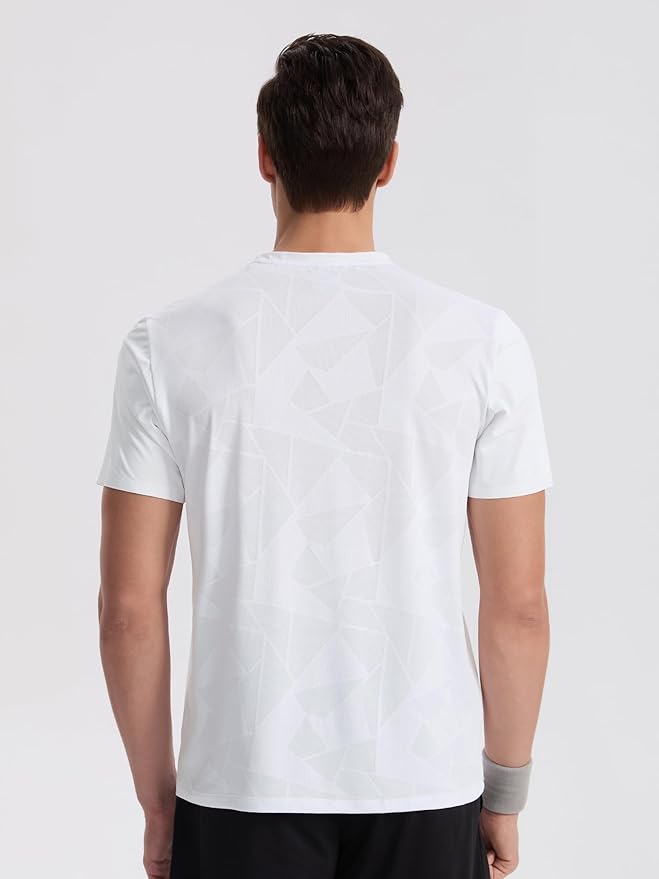 - Superior Breathability: Full-panel pinholes combined with jacquard patterns boost airflow, providing excellent ventilation and comfort in men’s athletic T-shirts for high-intensity sports