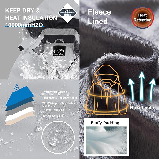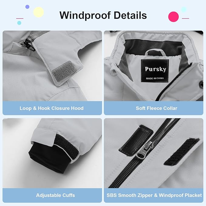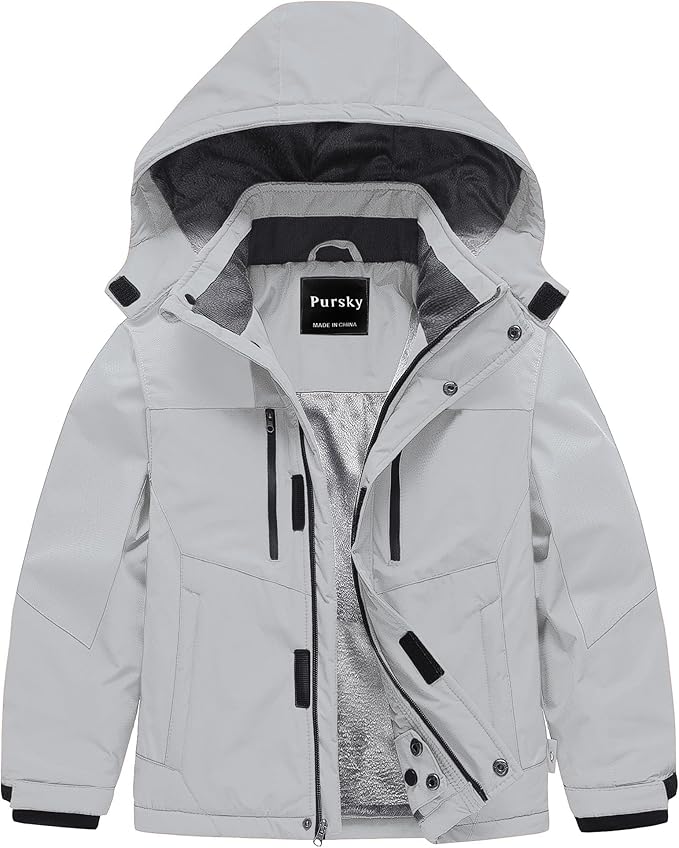 Pursky Boy's Waterproof Ski Jacket Kids Winter Snow Coats Fleece Raincoats Parka