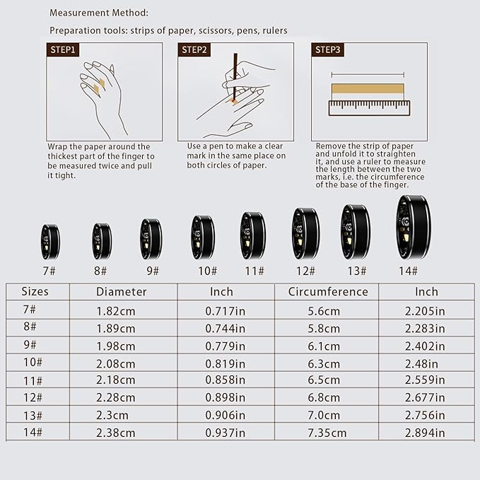 - 【Exceptional Support】: Our dedicated customer care team is here to assist with any questions or concerns about your smart health ring. We focus on providing quick, effective solutions to ensure a smooth, hassle-free experience. Your satisfaction drives our commitment to excellence