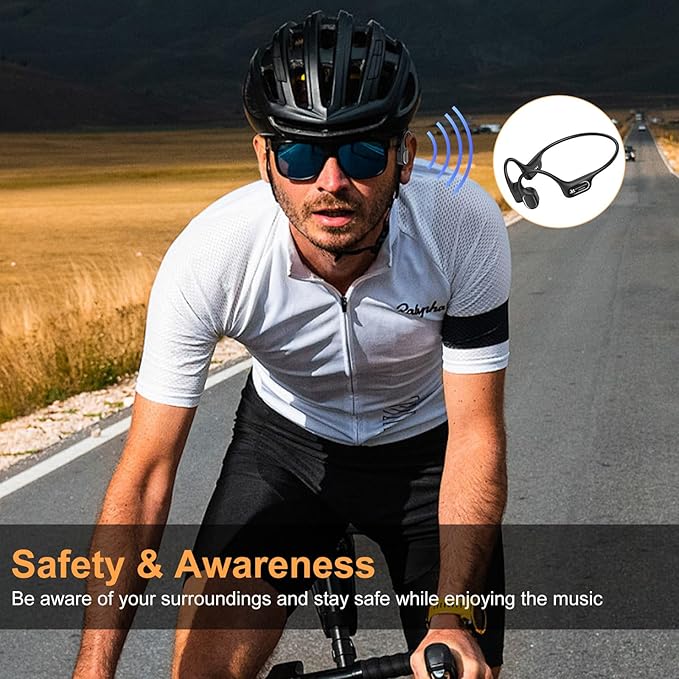 - Open-Ear Comfort: Crafted from ultra-soft silicone, these bone conduction Bluetooth headphones offer a comfortable fit for extended wear. Featuring advanced bone conduction technology, they deliver high-quality sound while keeping your ears open to ambient noise, making them ideal for swimming, running, cycling, and other outdoor activities. Not only are they safer than in-ear earbuds and over-ear headphones, but they also help prevent hearing damage