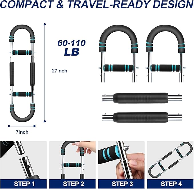 - 【Mulit-functional strength training machine】This muscle training bars is different from a traditional arm workout bar in that it stimulates more muscle groups, including chest exercises, wrist exercises, arms, back, legs, and shoulders. You can get a stronger body just by following the standard instructions. It's simpler and safer, making it the right choice for home gyms.