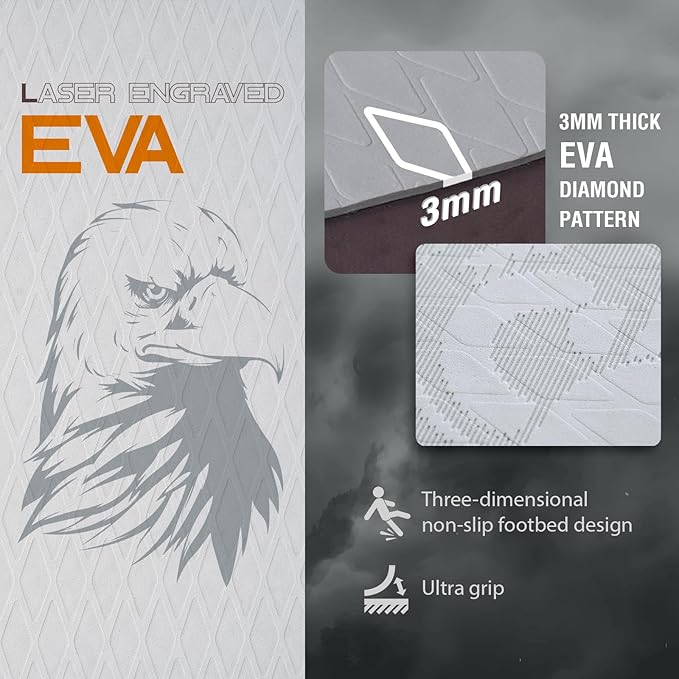 - 【Laser engraved EVA】 Surface laser engraved 3mm thick EVA diamond pattern, high coefficient of friction (≥0.6), wet still maintain a strong grip, with three-dimensional non-slip foot pad design, to avoid slipping and falling, the safety coefficient of pull full.