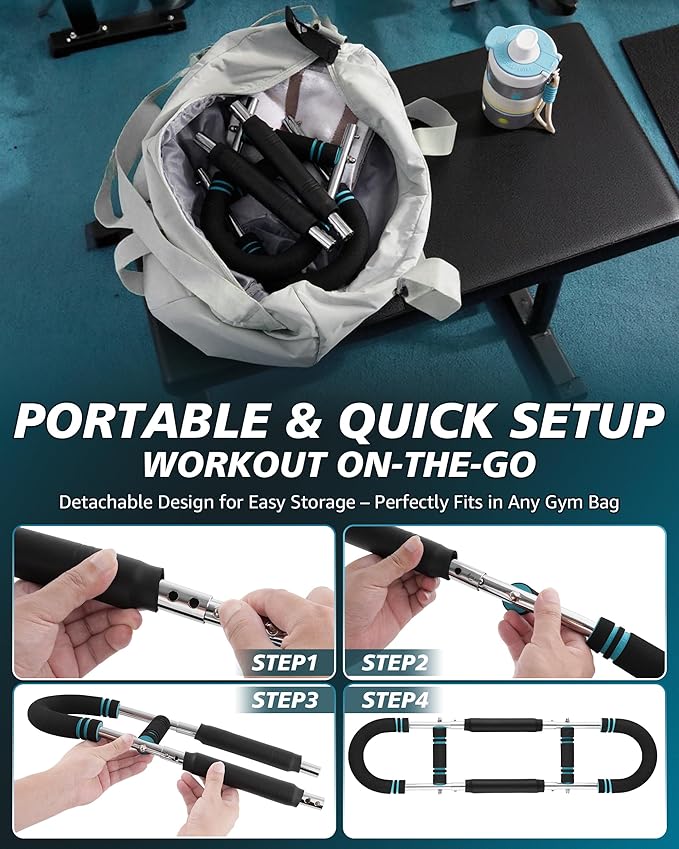 - Portable & Travel-Ready: Compact and detachable—fits easily in your gym bag or backpack. No gym? No problem. Work out anytime, anywhere: office, park, or hotel.