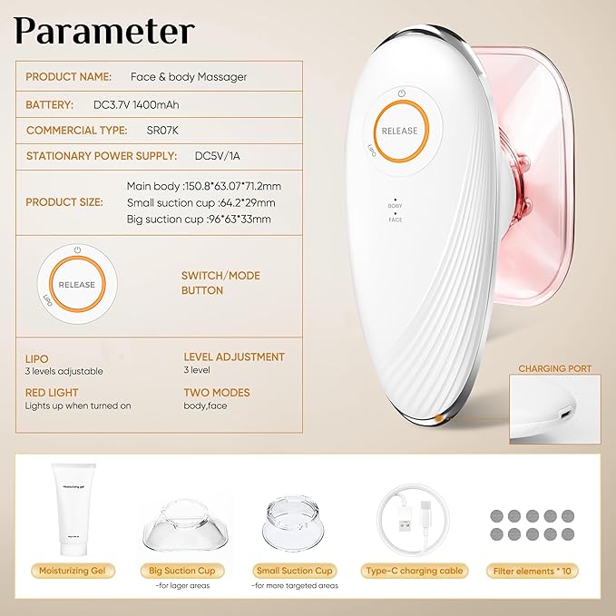 - Adjustable Modes: This cellulite machine has two modes, three adjustable suction strengths, and a one-touch pressure relief button. Easily perform body sculpt on any part of your body to make your skin firmer.