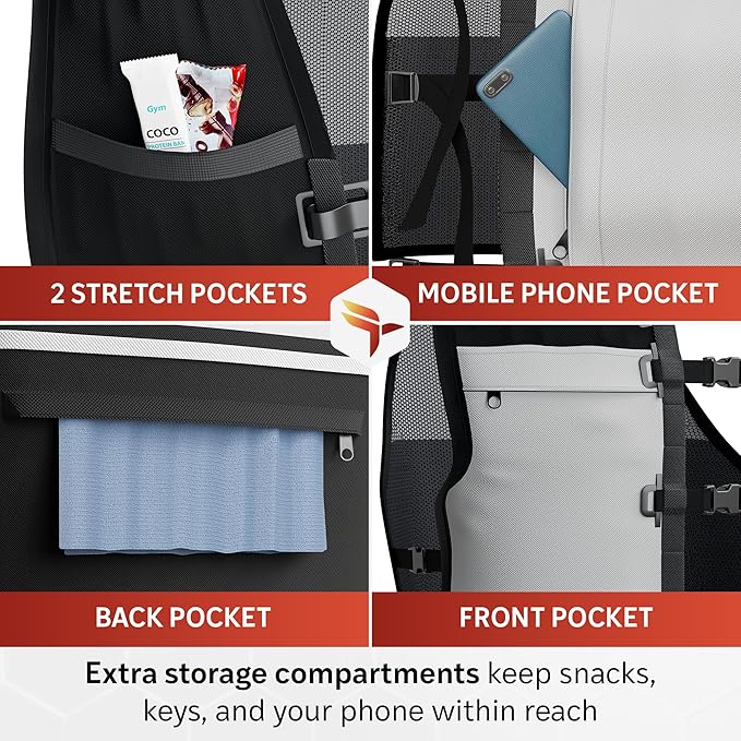 - CARRY EVERYTHING YOU NEED before heading out for miles. Drop your energy gels into the run vest’s stretch pockets, slide your phone into the secure storage, and use the front & back pockets of this water backpack for running to hold your essentials without adding bulk.