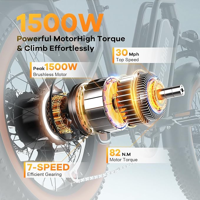 - ๐๐จ๐ฐ๐๐ซ๐๐ฎ๐ฅ ๐๐๐๐ค ๐๐๐๐๐ ๐๐จ๐ญ๐จ๐ซ:This electric bike is powered by 1000W(Peak 1500W) brushless motor, easily reach a top speed of 34 MPH. With strong driving force and climbing hills ability, climbing 30ยฐslopes, can conquer various terrains such as beaches, mountains, snow, city streets.If you like thrills and challenges, you can also ride this mountain Ebike for a non-stop adventure