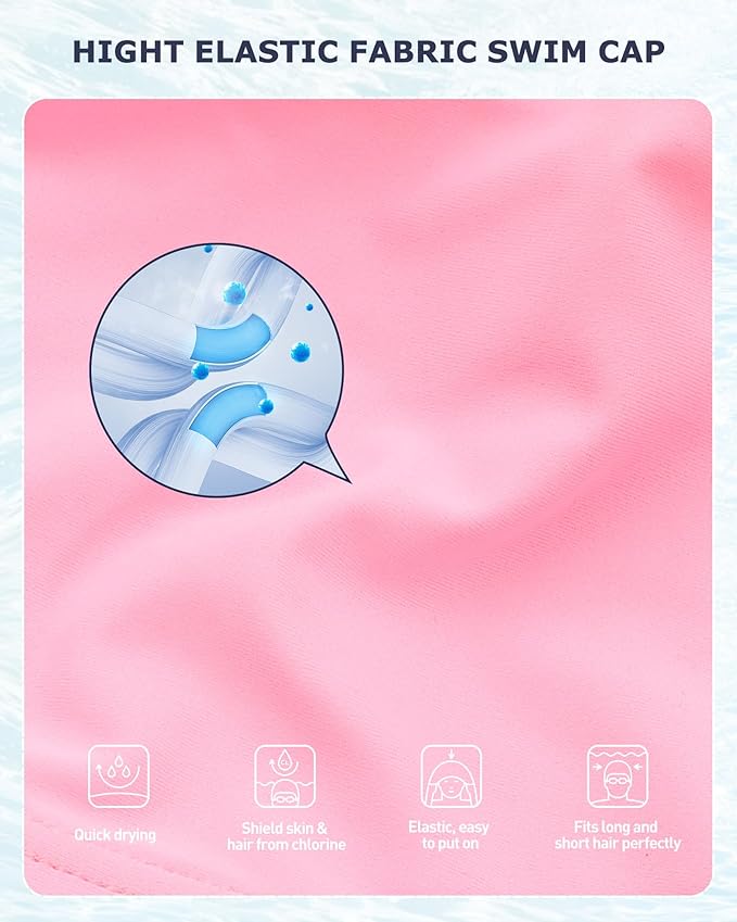 Firesara Fabric Swim Cap, High Elasticity Swimming Cap Keeps Hair Clean Breathable Fit Both Long Hair Short Hair, Swim Caps Woman Girls Men Kids One Size Hat