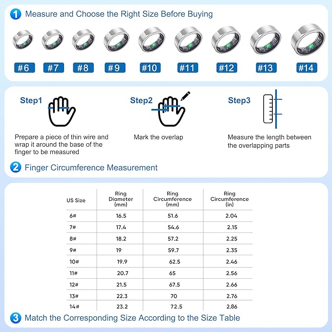 - 📐【Size First Before You Buy】 To ensure your SEEKZERO smart ring fits your finger perfectly, we recommend purchasing a size kit. The kit helps you determine the right size, ensuring a comfortable and secure fit for accurate tracking of your health metrics.
