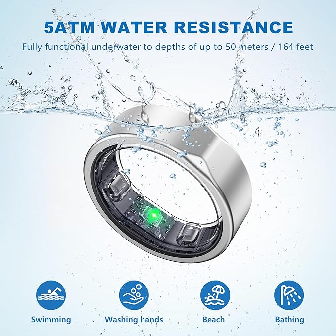 - 💧【5ATM Waterproof 】 Rain, sweat, or a quick rinse—SEEKZERO fitness ring is built to handle it all. With 5ATM waterproof protection, you can confidently wear it while washing hands, showering, or during intense workouts.