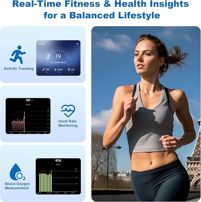 - 📱 【Works Seamlessly with iPhone & Android】 No matter which phone you use, this smart ring easily connects via Bluetooth to both iPhone and Android devices. Sync your health data in real time through the free app and get instant access to insights that keep you informed, motivated, and in control.