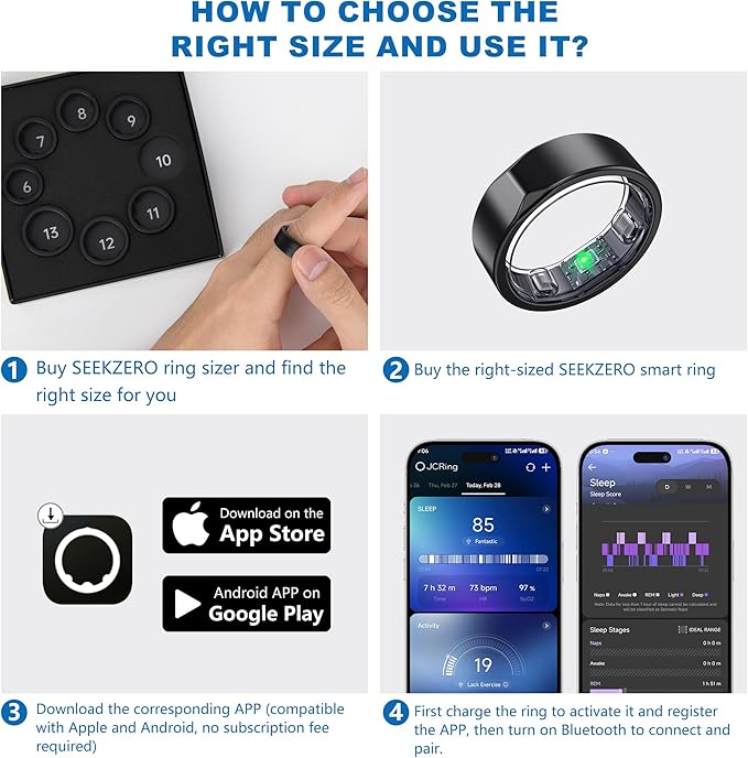 - ❤️ 【All-in-One Health & Activity Tracking】 From morning to night, SEEKZERO smart ring keeps you in tune with your body. Track your heart rate, steps, calories, sleep quality, and stress levels in real time—all from a sleek ring on your finger. Whether you're working, training, or winding down, you’ll get meaningful insights to help you stay balanced, active, and well-rested.
