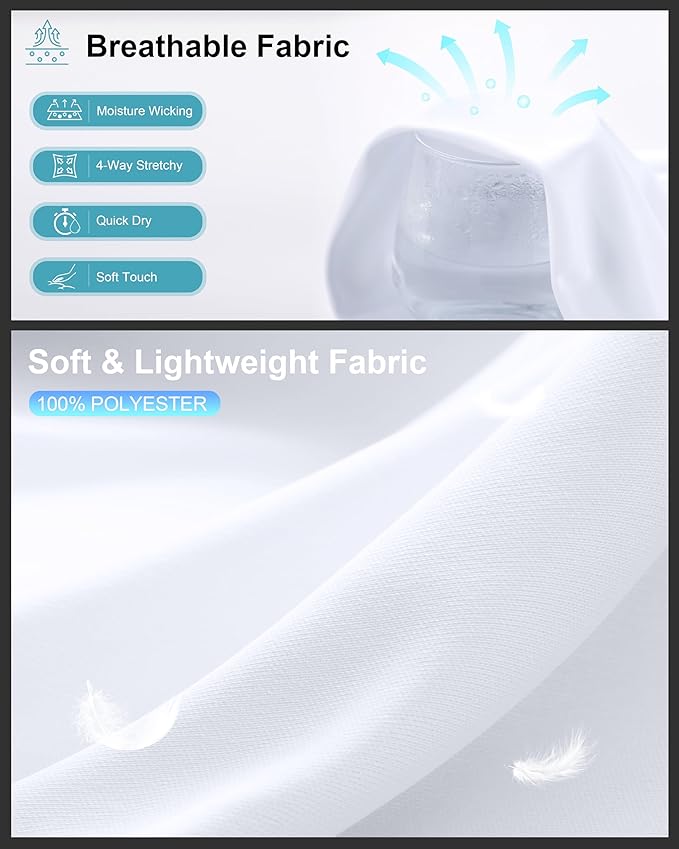 - Quick Dry & Moisture-Wicking: Crafted from quick-drying, moisture wicking fabric that effectively wicks away sweat, ensuring you stay dry and comfortable throughout the day