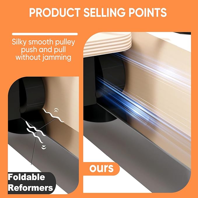 - Quiet & Smooth Glide System: Engineered for silent operation, the reformer features premium-grade rails and wheels for smooth, noise-free movement—perfect for apartment use or shared spaces
