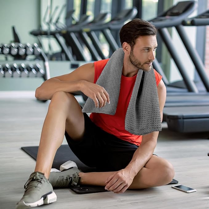 Microfiber Gym Towels for Working Out, Quickly Dry Yoga Towels for Men & Women Tennis, 16 Inch x 27 Inch, 6 Pack, Grey