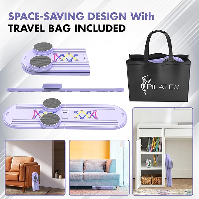 - Ready for Travel: Our foldable pilates reformer is portable and always ready for the next workout, whether you are at home, office, or traveling. What makes the Pilatex Pilates reformer board unique is the travel bag included in the set, for convenient storage and easy carrying