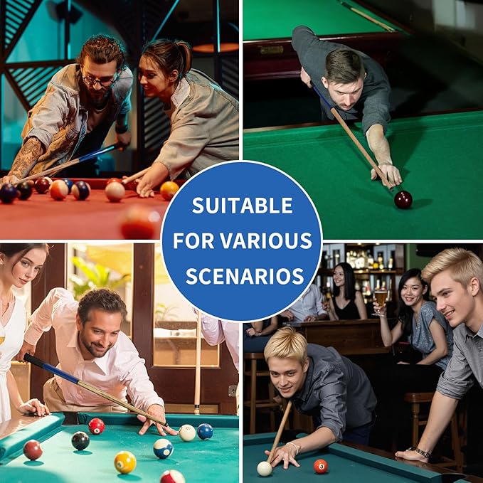 • Exquisite Craftsmanship: Pool cue is made of high-quality North American ash wood, which has been treated with black technology, making it harder than ordinary wood, straighter and less likely to bend.Breaking cue has a high-gloss glossy coating and multiple layers of varnish, which has good solvent resistance, helps protect the wood from moisture and bending, making it easier for players to maintain the cue stick