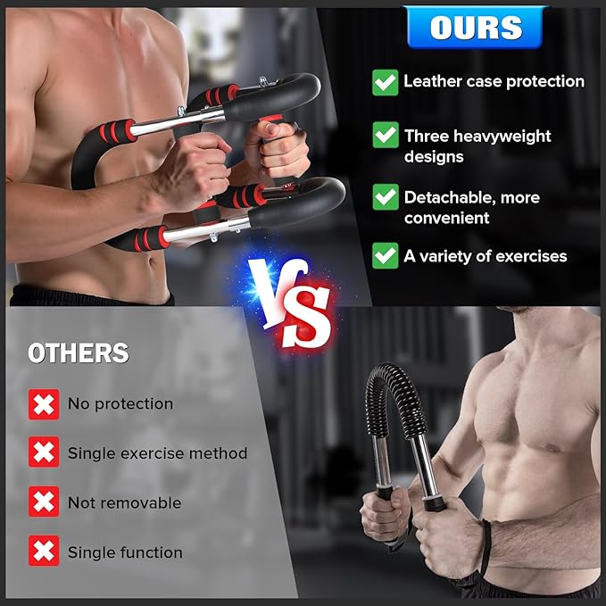 - 【Upgraded for Full-Body Power】: Traditional arm exercise bars are outdated. Our redesigned Twister Arm Trainer stimulates a wider range of muscle groups – chest, wrists, arms, back, legs, shoulders – offering a superior workout. Its simplicity and safety make following the standard instructions easy, helping you build a stronger body efficiently and safely at home.