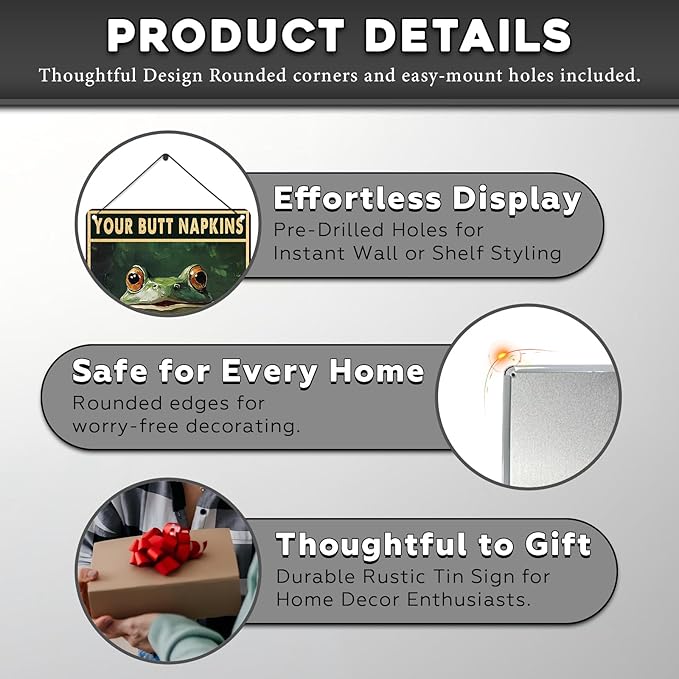 Funny Frog Bathroom Toilet Decor Metal Sign Frog Your Butt Napkin My Lord Vintage Tin Sign for Bedroom Toilet or Bathroom Wall 12 * 8inch