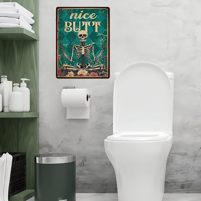 Skeleton Decor Tin Sign Retro Funny Skeleton Metal Sign for Bedroom Cafe Home Coffee Kitchen Bathroom Funny Wall Decor Art 12 * 16inch