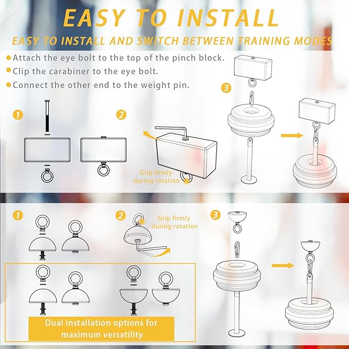 - 🔧 Simple Setup with Included Hardware Quick and secure assembly using carabiners and wrench. Compact and easy to switch between grip styles.