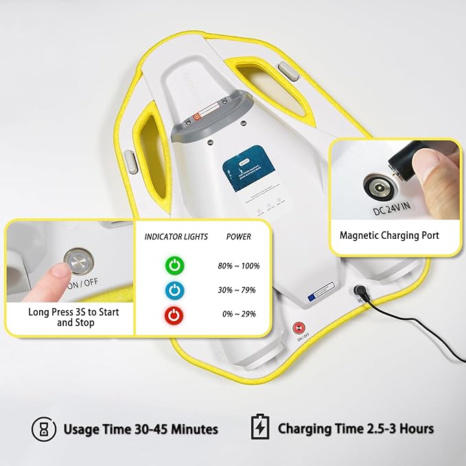 - Large-capacity battery: Electric swimming Pool Float has a built-in 24V/4.6Ah battery, with a comprehensive battery life of up to 45 minutes and a charging time of only 2.5-3 hours.