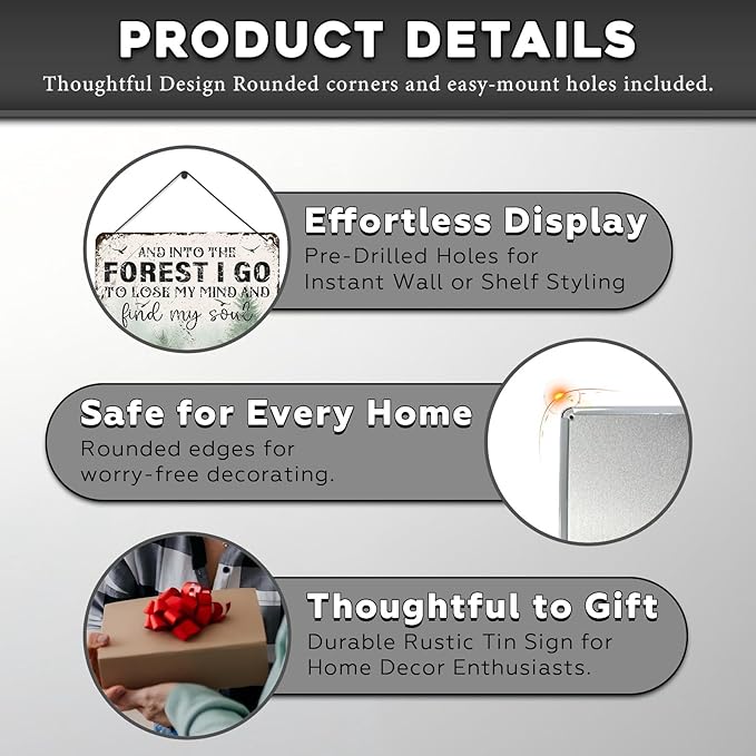 Vintage Sign And Into The Forest I Go to Lose My Mind and Find My Soul Hiking Girl Retro Metal Tin Sign for Home Coffee Wall Decor 12 * 16inch