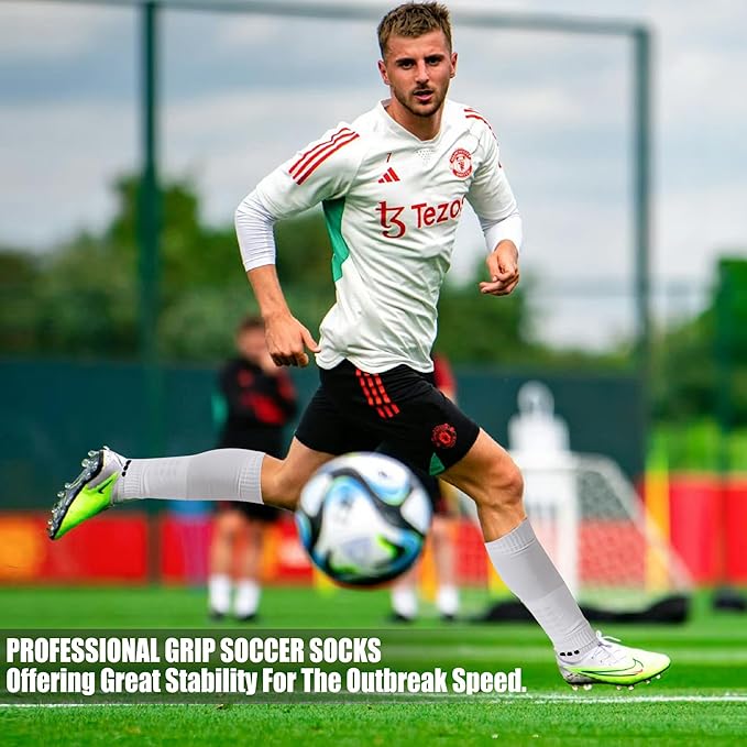 - Grip Soccer Socks: Made of the 97% polyester and 3% spandex, soft and breathable, designed with large-area non skid silicone pads on the bottom and heel, provided with good stability, can prevent injury and improve speed, allow you to perform well during sports