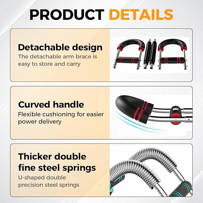 - Efficient & Portable Exercise: Whether you are a beginner or a professional athlete, It can help you with strength training, simple and practical. It's detachable, doesn't take up space, and you can use it to keep your muscles up when you're outdoors, traveling, in the office, or at home. It's a great addition to your gym. 10 min/ time,4 times/week, will give you perfect muscles.