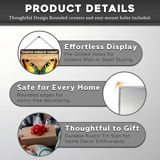 Vintage Garden Tin Sign Whisper Words Of Wisdom Let It Be Retro Butterfly Metal Poster Funny Wall Art Cafe Office Wall Decor for Kitchen Home Bar Pub Club 12 * 8inch