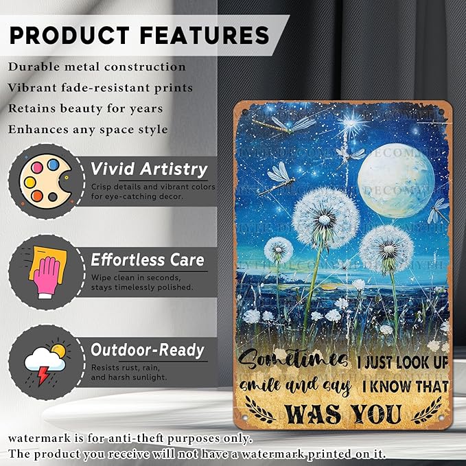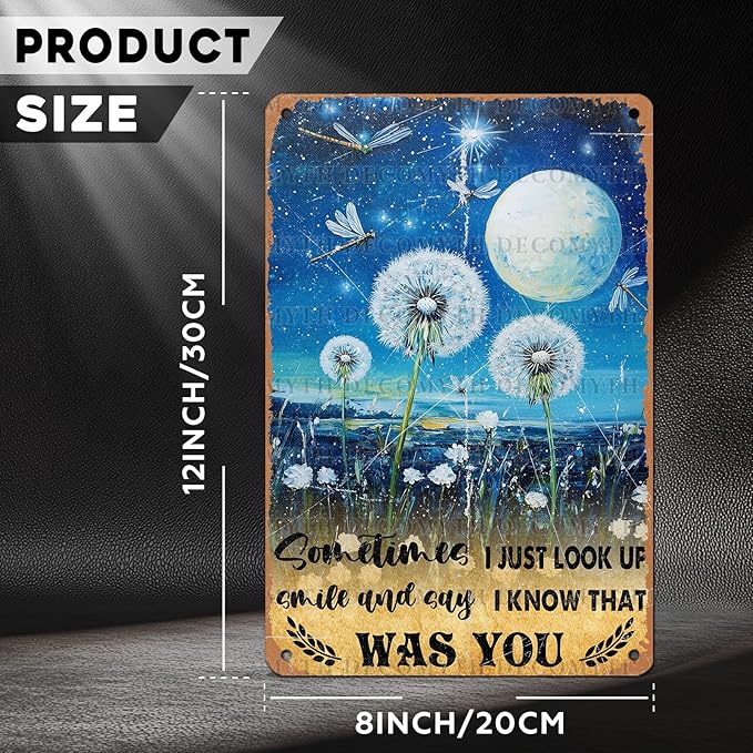 Vintage Dragonfly Tin Sign Sometimes I Just Look Up Smile and Say I Know That was You Retro Metal Poster Funny Wall Art Cafe Office Bar Plub Club Toilet Farm Room Garden Plaque 12 * 8inch