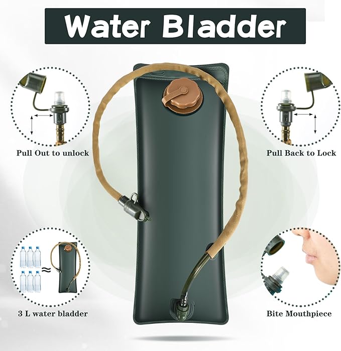 - Practical Function: these tactical hydration backpack are designed for many outdoor activities, such as running, biking, camping, hiking, climbing, hunting and any short trips, the straps can be fixed on your chest to prevent the bag shaking or falling during sports