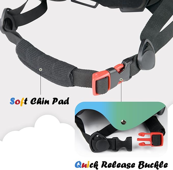 - Fully adjustable, provided by the crank adjustment dial, 2 sets of pads with different thickness, and length-adjustable chin straps
