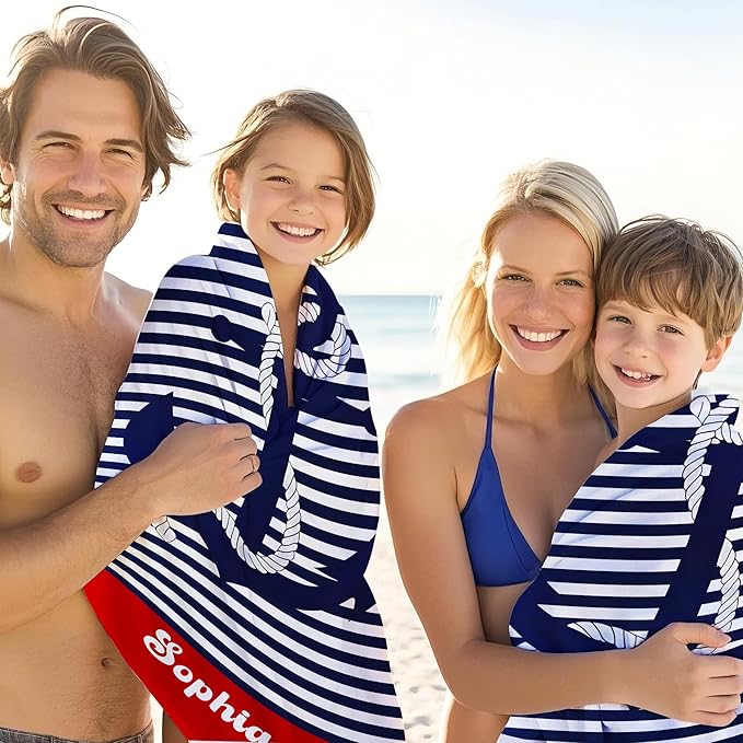 - Perfect Gift for Water Lovers: Whether it's for birthdays, summer vacations, Easter,Mother's Day,or just because, this personalized beach towel makes a delightful gift for swimmers, beach lovers, and sunshine chasers. Surprise your kids, partner, families, or friends with a unique and practical present they'll use all season long