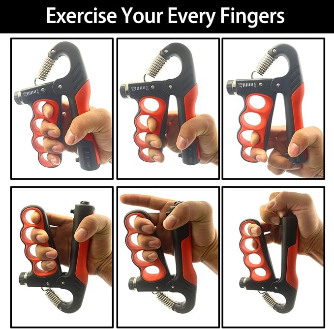 - 1. 【Ergonomic Design】: Crafted with high-strength stainless steel spring and anti-slip silicone grips, this grip strengthener ensures a secure, fatigue-free workout while protecting your hands from strain. Its contoured shape adapts to any palm size for ultimate comfort.
