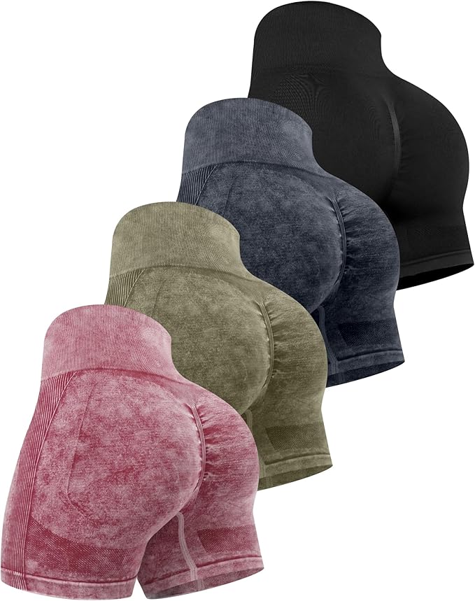 CHRLEISURE Women's 4 Packs Workout Gym Shorts, High Waisted Butt Lifting Scrunch Butt Seamless Booty Shorts