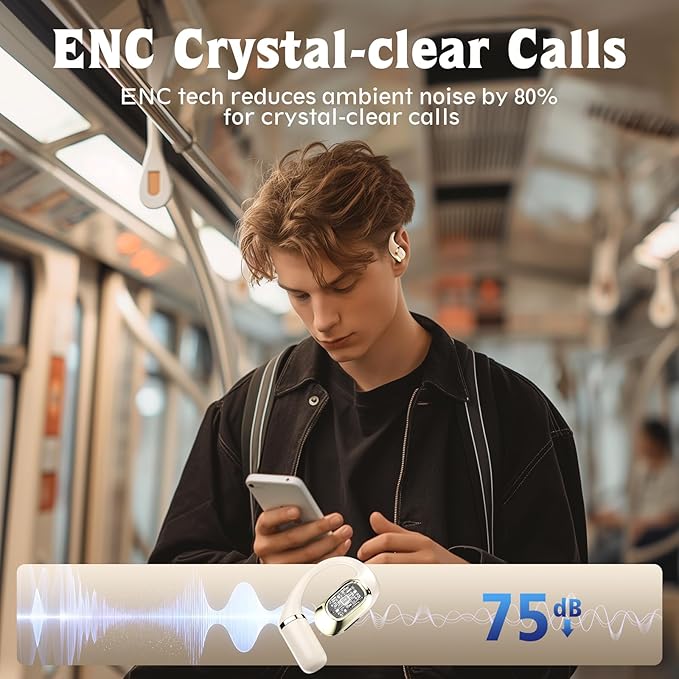OHAYO Open Ear Headphones,Earbuds with Ergonomic Earhook,Bluetooth Headphones 5.4 with Smart Digital Display,40H Playtime,IPX6 Waterproof,Touch Control Earphones Fit Cycling,Running,Workout(Beige)