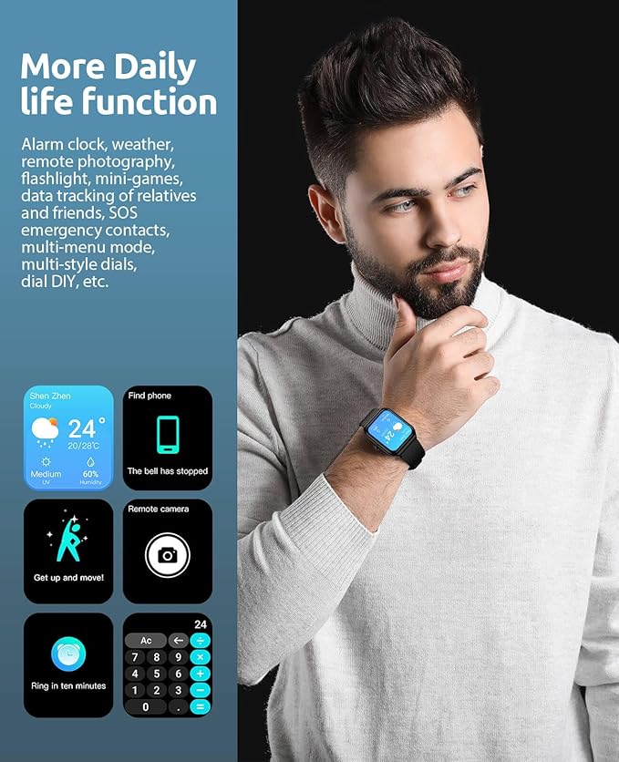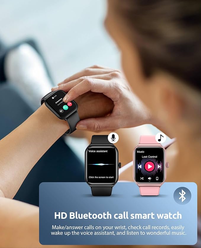 - 【Smart Voice & Dual-mode Bluetooth】Equipped with smart voice assistant and dual-mode Bluetooth technology, the smartwatches for man women instantly become a portable smart control center. Independent calls during exercise, synchronized messages during commuting, and overall control without a mobile phone. The dual-band anti-interference of the smart watch allows you to commute in the city and explore outdoors, and the signal of the watch is always as stable as a rock.