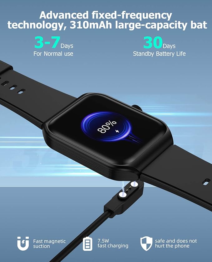 - 【Battery Life & Compatibility】Our fitness watch offers 30 days of standby mode and 3-5 days of continuous daily use, so you don't have to worry about charging. It is perfectly compatible with users of Android 4.4, IOS 9.0 and above, and integrates seamlessly with your smartphone ecosystem. With multiple charging cycles, you can track your workouts, receive notifications, and monitor health indicators. Optimized battery management ensures you stay connected during busy weekdays and busy weekends.