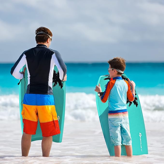 - [Premium Construction & Durability]: Engineered for premium performance, this bodyboard utilizes heat-sealed lamination technology to reinforce structural integrity and waterproofing. XPE deck resists impact, while the weatherproof EPS core delivers optimal buoyancy and shock absorption. Paired with smooth HDPE bottom, it allows for effortless, high-speed gliding.