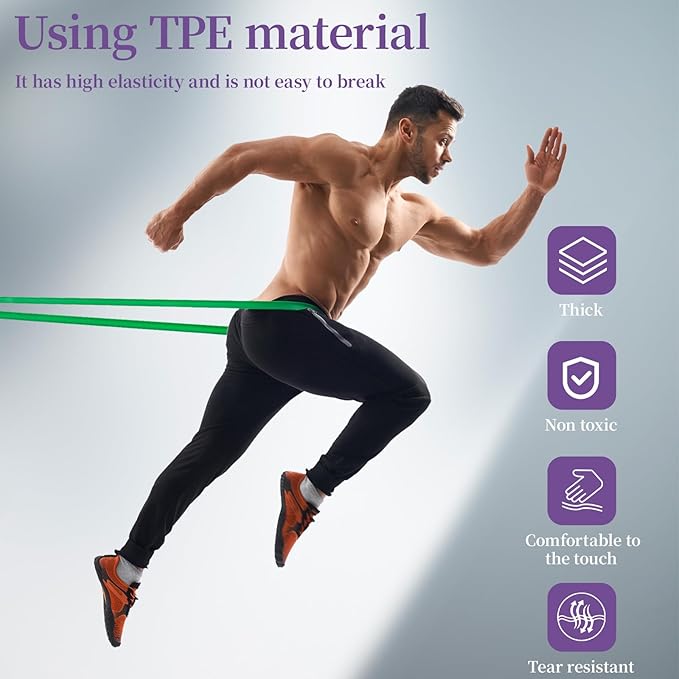 - High-quality TPE: Our thick resistance bands are made of high-quality TPE material, which gives the workout bands good elasticity and stretchability, and the pull up assistance bands will not break even with prolonged use
