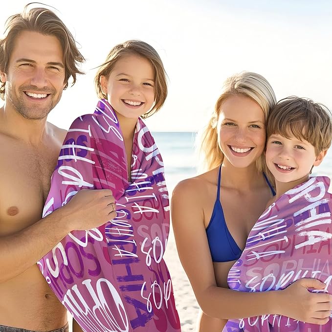 - Perfect Gift for Water Lovers: Whether it's for birthdays, summer vacations, Easter,Mother's Day,or just because, this personalized beach towel makes a delightful gift for swimmers, beach lovers, and sunshine chasers. Surprise your kids, partner, families, or friends with a unique and practical present they'll use all season long