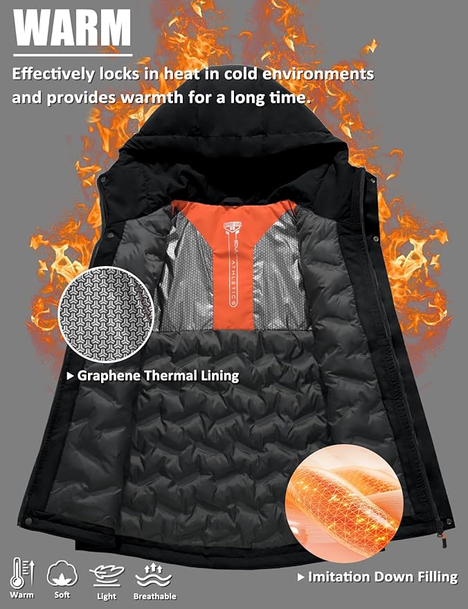 Men's Winter Jacket Waterproof Ski Snow Coat Windproof Snowboard Hooded Raincoats with Warm Graphene lining