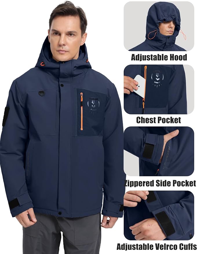 - Waterproof & Windproof:Constructed with high-performance 4-level protective fabric, this men's ski jacket provides superior resistance against wind and water. Whether you're skiing down slopes or navigating daily commutes in rain or snow, it ensures reliable dryness and comfort in harsh outdoor conditions.