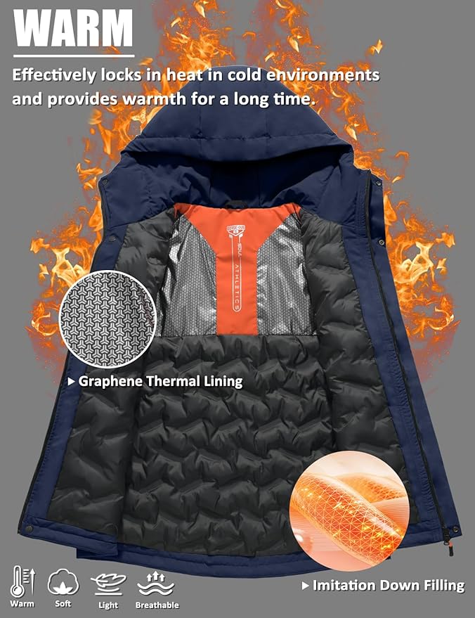 Men's Winter Jacket Waterproof Ski Snow Coat Windproof Snowboard Hooded Raincoats with Warm Graphene lining