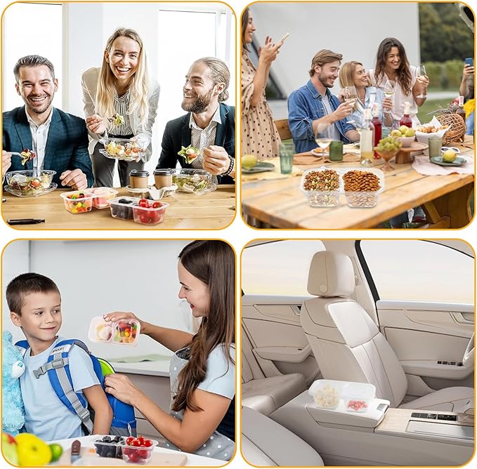 - Dual-Compartment Convenience – Each container features two compartments, ideal for separating snacks and sauces. Great for pairing chips with salsa, fruits with nut butter, or veggies with dips.